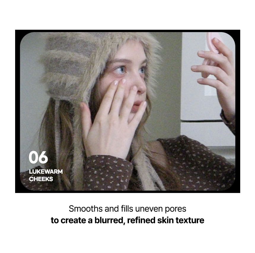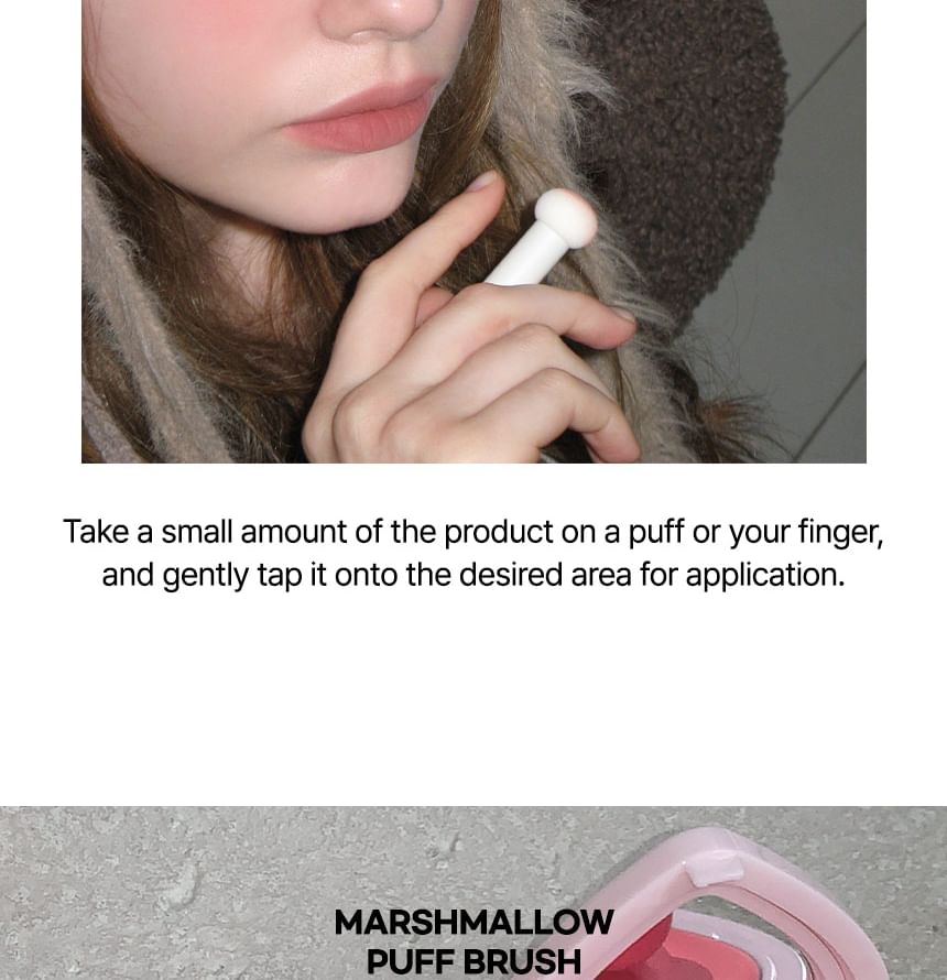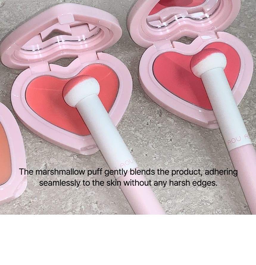 Use the AOU Marshmallow Puff Brush or fingertips to gently apply product to cheeks and blend evenly for a natural finish.
