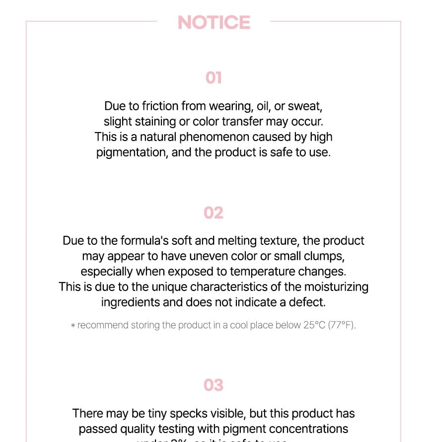 Dicaprylyl Carbonate, Silica, Octyldodecanol, Mica, Titanium Dioxide, Polyglyceryl-2 Triisostearate, Microcrystalline Wax, Ceresin, Isododecane, Synthetic Wax, Euphorbia Cerifera (Candelilla) Wax, Cetyl PEG/PPG-10/1 Dimethicone, Silica Dimethyl Silylate, VP/Hexadecene Copolymer, Ferric Oxide, Diisostearyl Malate, Disteardimonium Hectorite, Hydrated Ferric Oxide, Phloxine B, Ferrous-Ferric Oxide, Water, Prunus Amygdalus Dulcis (Sweet Almond) Oil, Propylene Carbonate, Chondrus Crispus Extract, Fragrance, Ethylhexylglycerin, Butylene Glycol, 1,2-Hexanediol, Sodium Hyaluronate, BHT This list of ingredients represents all options or variants of this product. Actual ingredients in a given product option may vary from this list. Ingredients subject to change at manufacturer's discretion. For the most complete and up-to-date list of ingredients, please refer to product packaging.