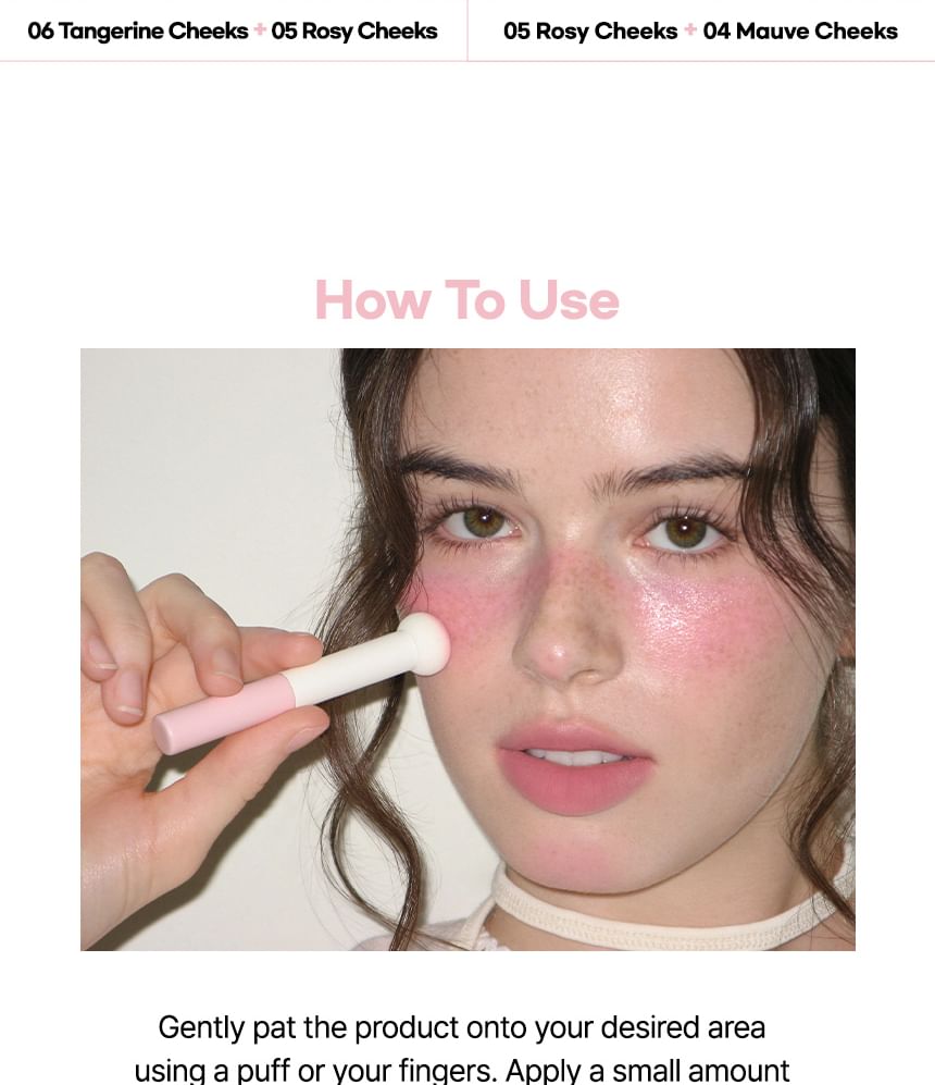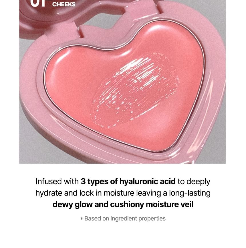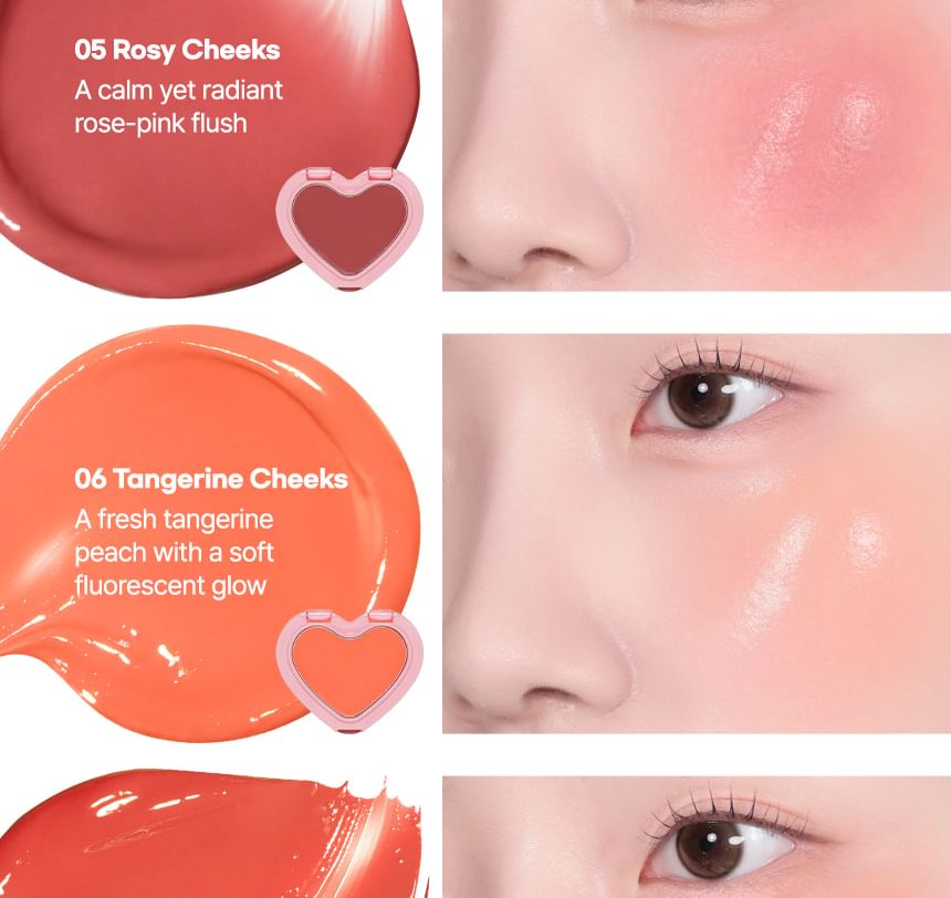 - A long-lasting cream blusher with 6 buildable shades that gently layers colors onto the cheeks, creating a sheer, radiant glow.