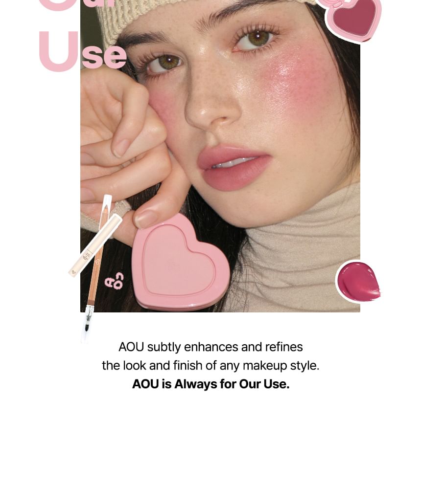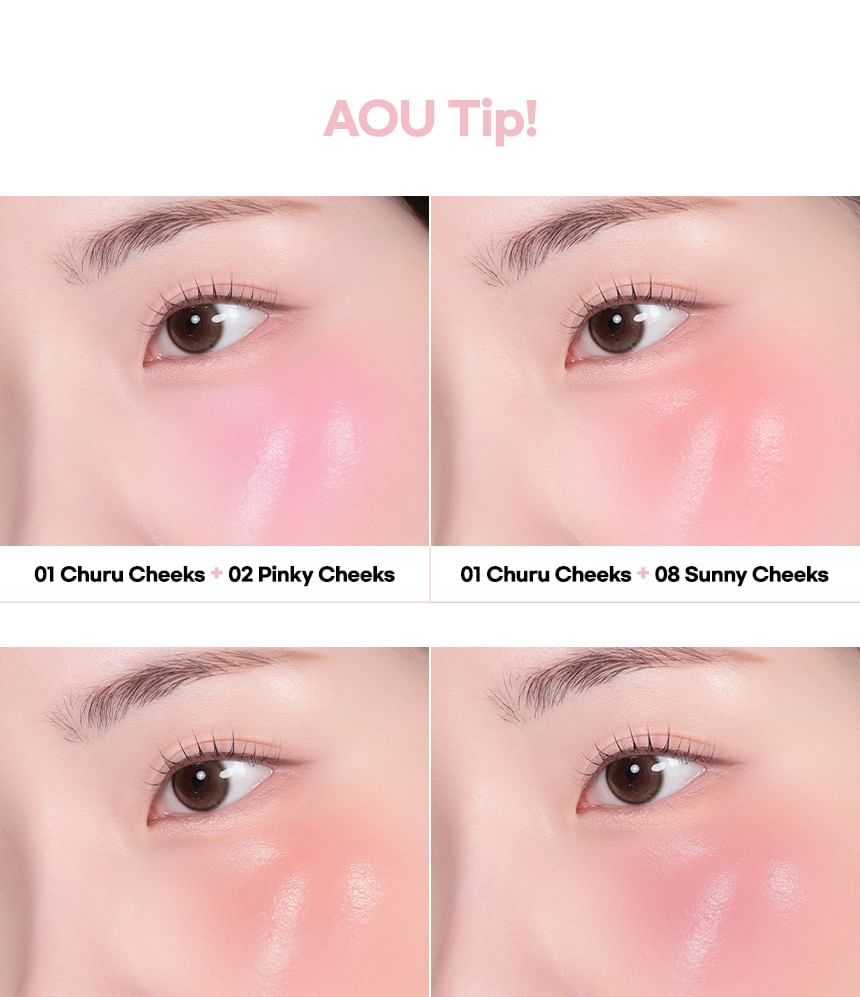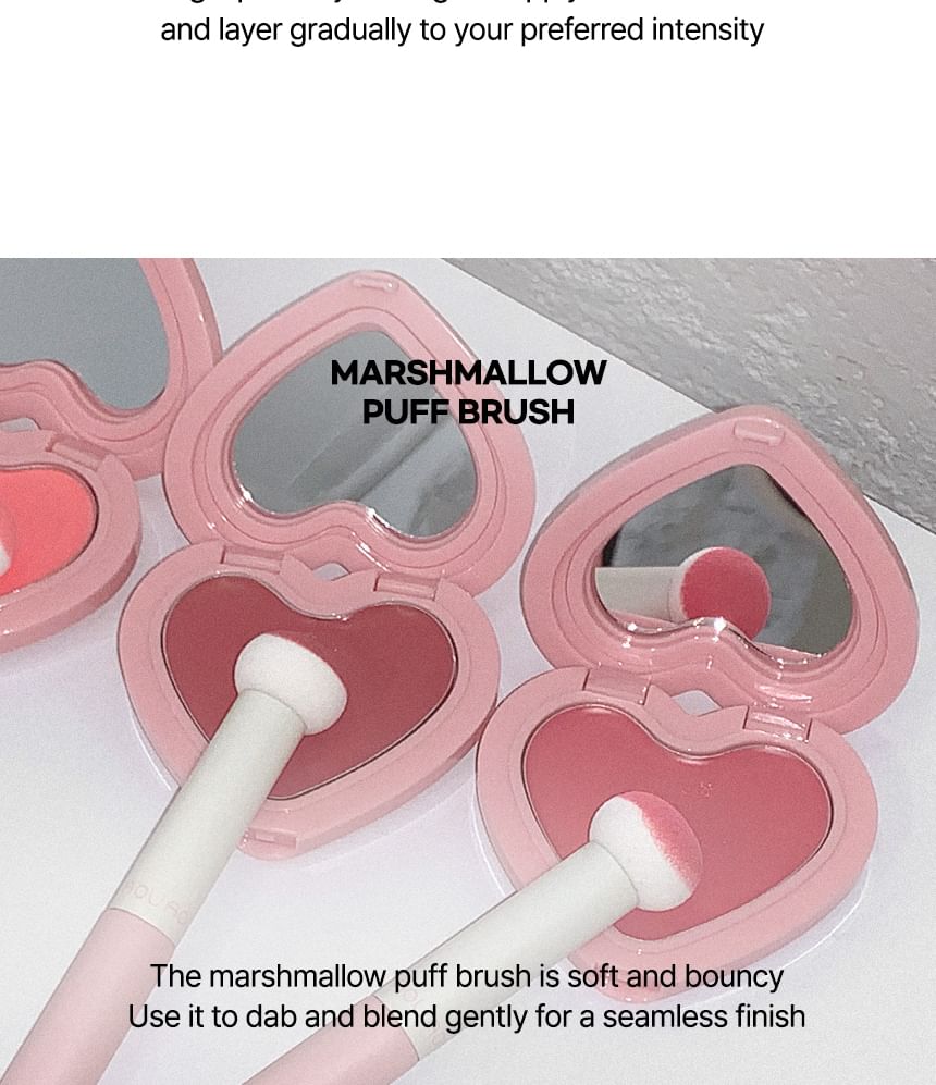 - Use the AOU Marshmallow Puff Brush or fingertips to gently apply product to cheeks and blend evenly for a natural finish.