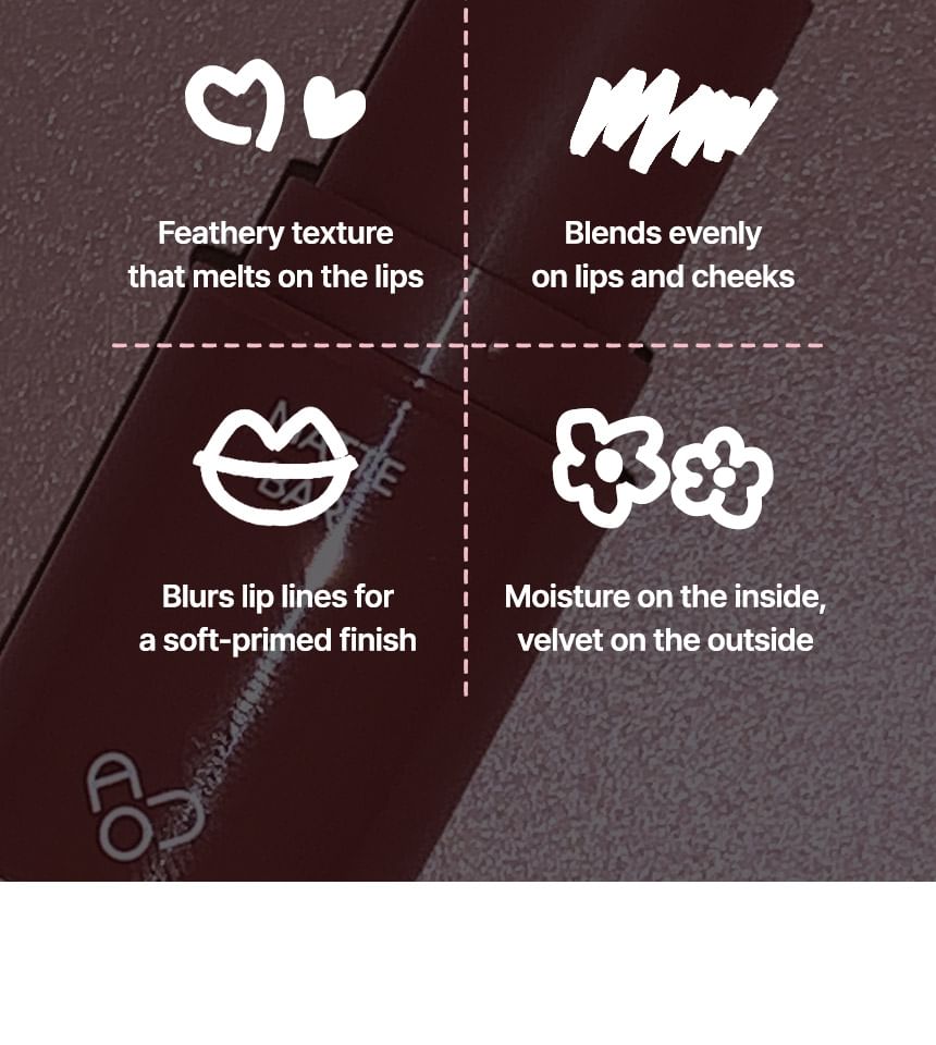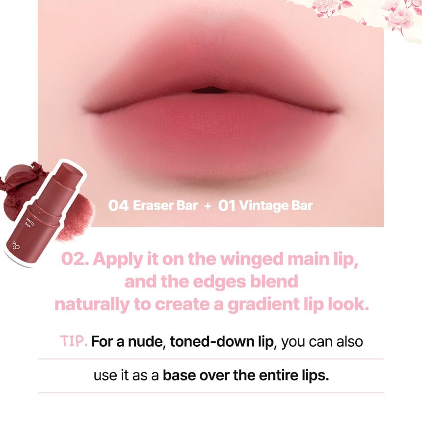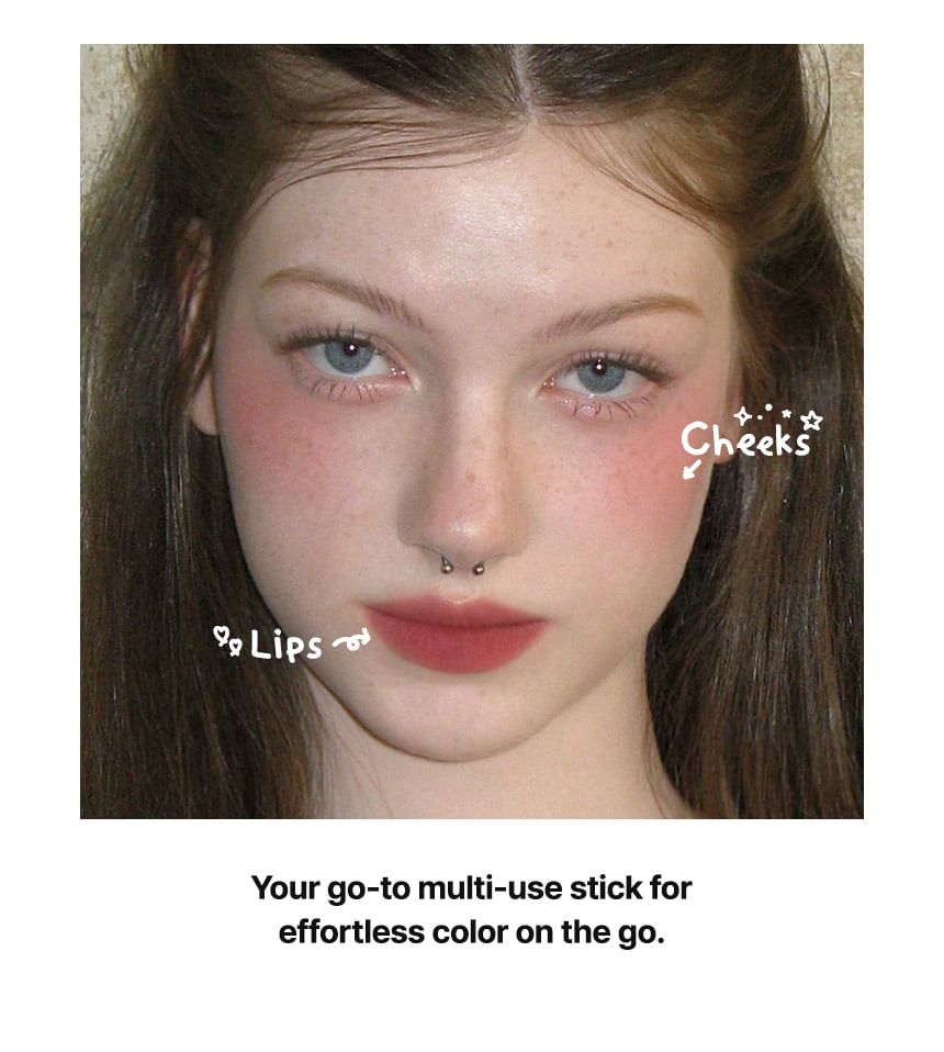 A 2-in-1 multi-use lip bar that doubles as a blush, naturally covering lip line and providing 4 natural flush of colors with a smooth matte finish.