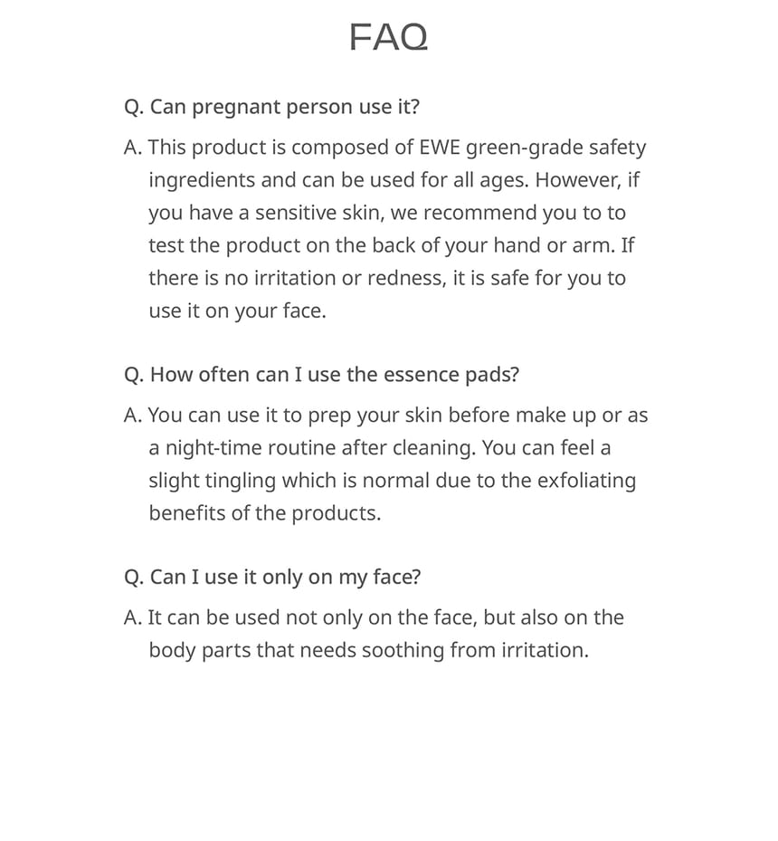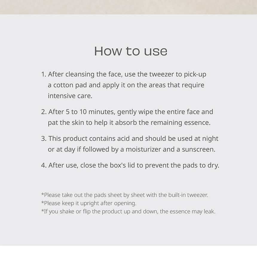 - The concentrated essence soaked cotton pads effectively deliver a large amount of essence to your skin without irritation.
