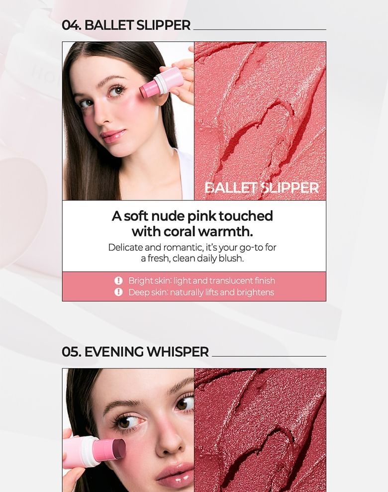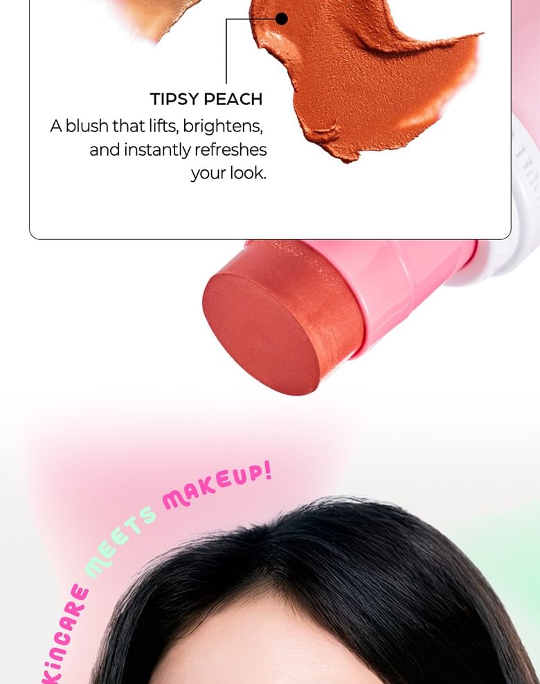 A pocket-size stick blush helps create cute and dewy makeup looks with just a few taps.