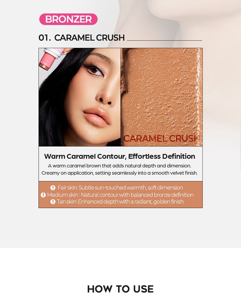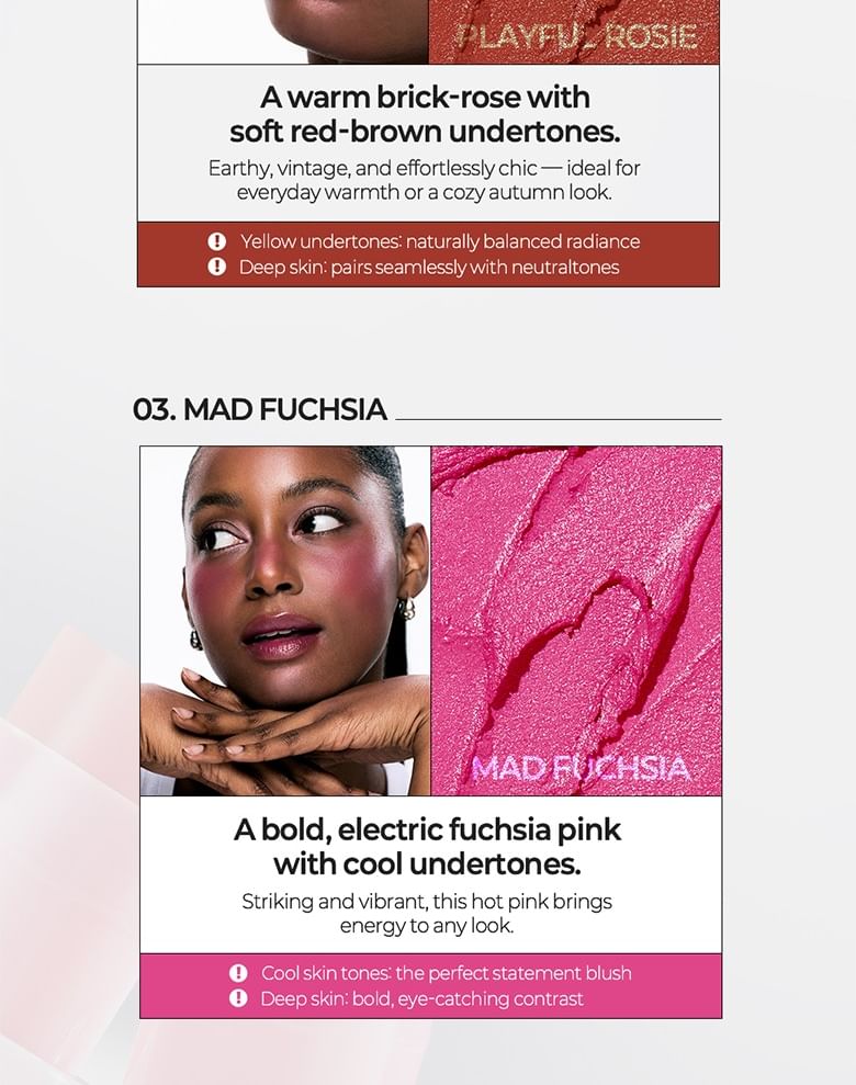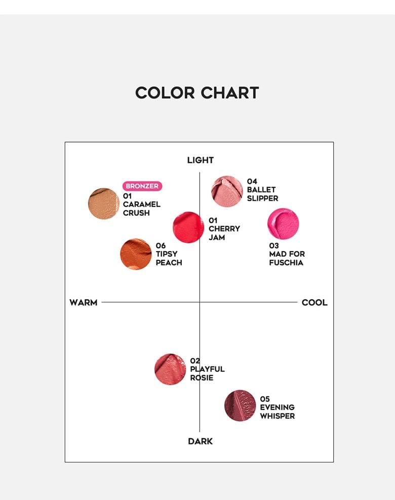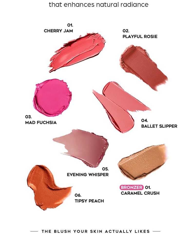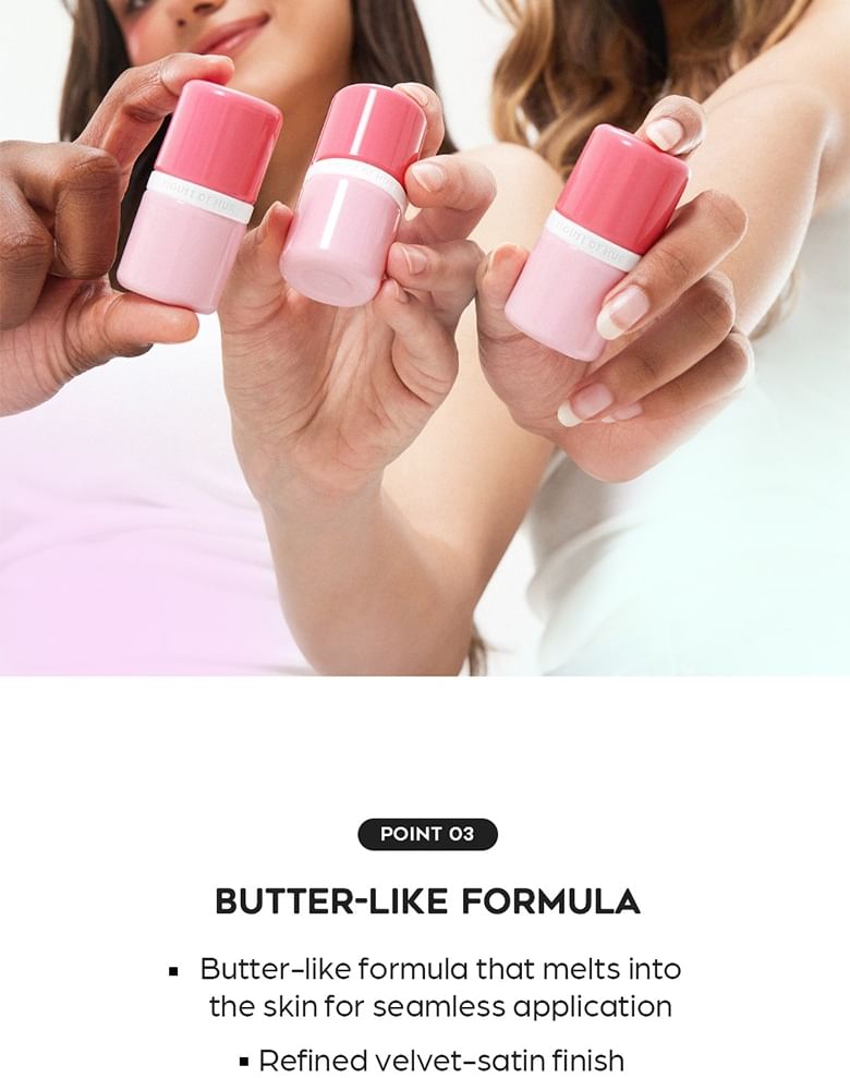 This cream-in-stick blush delivers a smooth, butter-like texture to help blend out effortlessly onto the skin without streaks or dryness.