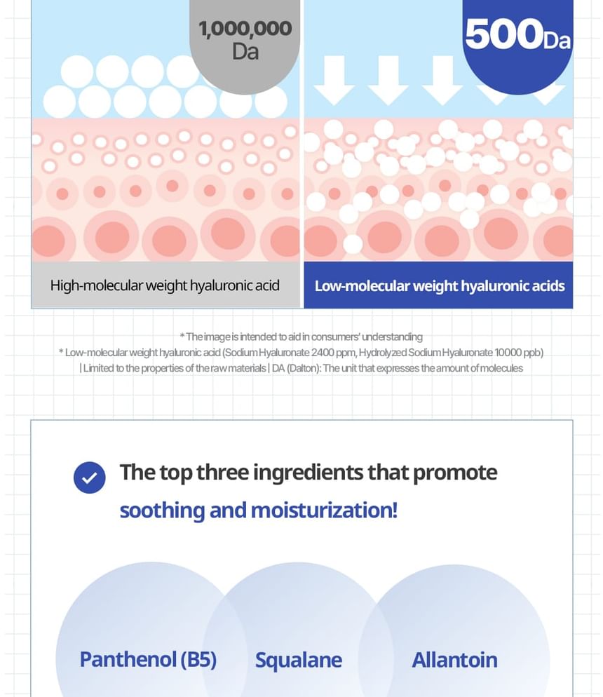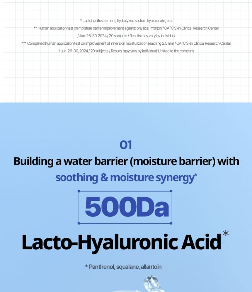 - Includes 1% of 500Da Lacto-Hyaluronic Acid which helps moisturize the skin while strengthening the skin moisture barrier.