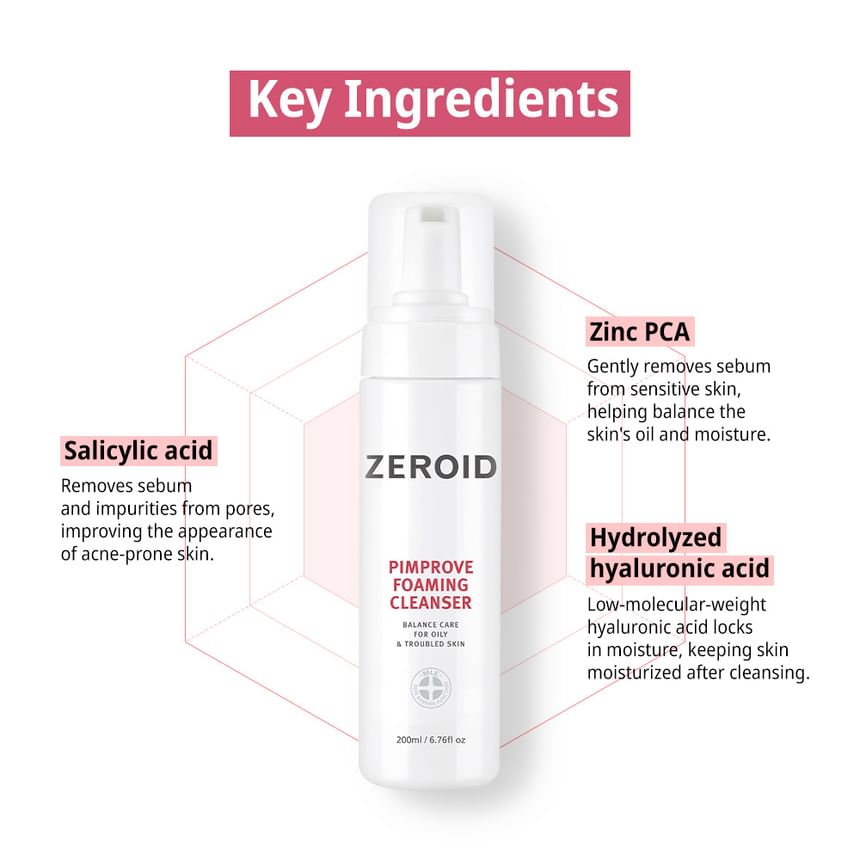 Infused with Zinc PCA, Salicylic Acid and Hydrolyzed Hyaluronic acid to remove sebum and impurities gently while retaining moisture for hydrated skin.